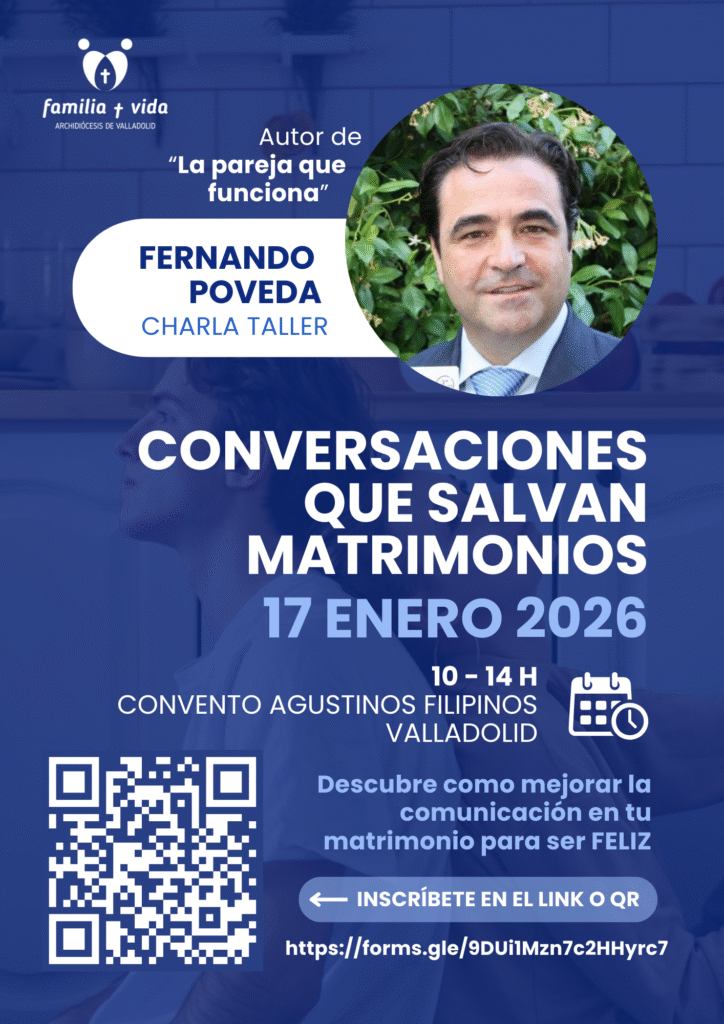 Este año tendremos la participación de Fernando Poveda, que es experto en comunicación y resolución de conflictos en el matrimonio. Su charla-taller nos puede servir para la pastoral familiar, pero también para nuestros propios matrimonios.